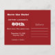 Uma bola de futebol sobre um fundo azul escuro decora este cartão postal de aniversário único e divertido do 80 "Save the Date". O inverso tem letras brancas sobre fundo vermelho. Você pode mudar facilmente o texto para nome, idade, evento, data, etc. Os fãs do esporte vão adorar! Todos os direitos reservados © 2015 Alan & Marcia Socolik.
