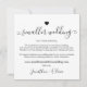 Um simples cartão de anúncio de casamento em preto e branco Script Menor Foto Casamento para informar aos seus convidados que você decidiu ter um casamento menor, casamento íntimo, casamento reduzido, microcasamento.