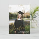 Este anúncio de graduação de sangramento de cheio apresenta uma saudação moderna de caligrafia "formando" em uma deliciosa folha de ouro. Este design de chic realmente permite que sua foto brilhe mantendo os detalhes mínimos enquanto a saudação define o tom festivo. Dica: você pode facilmente adicionar mais texto ou uma foto adicional na parte traseira removendo o backer de padrão opcional.