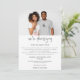 Para ocasiões em que uma cerimônia de casamento socialmente distante é necessária e você deseja informar aos seus convidados que está reduzindo o número de participantes e convidá-los para a transmissão ao vivo, este design contemporâneo moderno tem sua foto no topo e um script de estilo de escrita manual moderno com Estamos Reduzindo abaixo. O resto do texto você pode personalizar facilmente com seus detalhes.