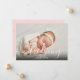 Apresentando um roteiro elegante, bebê menina cor-de-rosa, anúncio de nascimento de foto apresentando mensagens elegantes de roteiro. Estes cartões de anúncio de nascimento bonitos são uma forma perfeita de dar a conhecer a todos as suas notícias maravilhosas e entusiasmantes. Personalize a frente com a foto e o nome do seu bebê. O reverso apresenta uma bela mensagem de roteiro junto com seu obrigado pessoal, sua mensagem e estatísticas de natalidade. Projetado por Thisnotme©