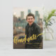 Comemore a faculdade, universidade ou segundo grau do seu filho com este cartão de anúncio de na moda e de fotografia de formando preto. Com a caligrafia moderna do roteiro dourado e o modelo de fotografia do formando, este design capta o entusiasmo de novos começos e comemorações alegres. Personalize-o com uma foto apreciada do seu formando usando o modelo de foto fácil de usar e realce os detalhes do evento na impressionante tipografia. Desenvolvido pela artista Catherine Sweetman, este convite único combina lindamente estilo com a emoção da conquista do seu filho, fazer a maneira ideal de juntar entes queridos e marcar este marco especial.