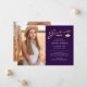 Este anúncio ou cartões de agradecimentos de graduação com dois lados, com na moda, apresenta texto moderno fundido com um roteiro elegante de caligrafia em ouro e branco em roxo real. As fotos são uma na frente e outra na parte de trás, perfeita para enquadramento. O plano de fundo pode ser facilmente personalizado para uma cor de sua escolha. Para ver mais itens como este, visite minha loja aqui em "www.Zazzle.com/LakeViewCardCo". Obrigados