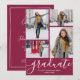 Adicione suas quatro fotos favoritas na frente destes convites de festa de formatura com a letra chique 'graduado e turma de' em um fundo de cor escolar vermelha. Clique no link Personalizar ainda mais para alterar para qualquer cor usando nossas ferramentas de design. MAIS designs e cores feitos em nossa loja, incluindo convites, cartões de salvar a data e postais.