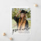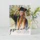 Cartão de Anúncio de Formatura Minimalista Simples. A frente apresenta uma foto em página inteira com "Graduado" em letra cursiva preta na parte inferior. Abaixo dela, o nome do graduado, "Turma de 2026" e o nome da escola são exibidos sobre um gradiente branco sutil que se funde perfeitamente na imagem, garantindo que o texto se destaque.