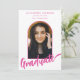 Comemore a faculdade, universidade ou segundo grau da sua filha com este vibrante cartão de licenciatura em formando, inspirado no Boho, de cor rosa-quente. Apresentando caligrafia robusta e um elegante modelo de fotografia de formando de arco rosa-quente, este design capta o entusiasmo de novos começos e celebração alegre. Personalize-o com uma foto apreciada do seu formando usando o modelo de foto fácil de usar e realce os detalhes do evento na impressionante tipografia. Desenhado pela artista Catherine Sweetman, este convite único combina lindamente o encanto da natureza com a emoção da conquista da sua filha, fazer a forma ideal de reunir entes queridos e marcar este marco especial.