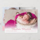 Cartão de nascimento de bebê fotográfico para apresentar sua linda filha bebê recém-nascida. A frente inclui sua foto de bebê, com um nome de roteiro elegante e estatísticas de natalidade. O reverso tem mais duas fotos de bebês e inclui uma mensagem de script branco e um nome(s) da família ou dos pais definidos em um plano de fundo rosa. Projetado por Thisnotme©