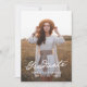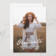 Este anúncio de graduação elegante de 2025 apresenta duas fotos da faculdade ou do formando segundo grau. Um guião branco, branco vintage, aparece em uma camada junto com duas fotos do formando. Você pode ajustar o texto na parte traseira do cartão para fazer com que isso seja um simples anúncio de graduação ou um convite de festas de formando. Um na moda e design de graduação simples para a classe de 2025!