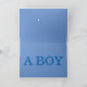Simple baby boy birth announcement greeting card inside color top and bottom is blue with the words A BOY in contrasting blue