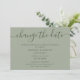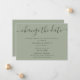 Anuncie o adiamento do seu casamento com este cartão verde sage minimalista com uma fonte de letra moderna.