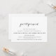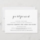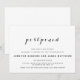 Para casais que desejam um design de casamento simples, porém elegante. Elke Clarke © O design apresenta os nomes dos noivos em uma fonte de letra elegante com a palavra "adiado". Mostrado em preto e branco, mas pode ser personalizado para as cores do seu casamento para o texto e o fundo. Adicione outros gráficos, fotos ou monogramas para personalizar este modelo.