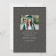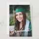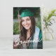 Com um simples "formando" num estilo manuscrito moderno, este anúncio de graduação de duas fotos e o convite são a forma perfeita de celebrar o seu formando. Apresentando uma foto vertical na frente com o tipo branco, este design também tem espaço na cinza da ardósia neutra para incluir uma segunda foto e detalhes da festa de formatura. É um design de graduação na moda perfeito para meninas e caras e funciona bem para a graduação de segundos graus e formandos universitários. Este convite da parte de formando por Lea Delaveris Design também está disponível como download digital. Encontre mais estilos na coleção.