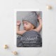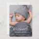 Esta carta simples e encantadora de anúncio de nascimento de fotos apresenta um design contemporâneo que é facilmente personalizado com a foto do seu bebê, os detalhes e a sua mensagem.Escolhemos cantos arredondados como a configuração padrão de forma, mas você pode facilmente mudar o aspecto para cantos agudos, já que essa aparência também funciona maravilhosamente com este design. Experimente as duas formas no modo de edição e veja quais são as suas propriedades! Junto com o formato de foto do cheio, fizemos do primeiro nome do seu bebê o foco, apresentado em um roteiro moderno que é ao mesmo tempo arrumado e legível, mas também expressivo, quente e familiar. Por favor, note que se o nome do seu bebê incluir um minúsculo 'p', 'j' ou 'y', a cauda da letra poderá mergulhar no texto abaixo dela, e isso poderá tornar este design mais desafiador a personalizar em tais capas. O script first name e o outro texto na frente da placa são brancos nítidos. Você pode mudar a cor e a fonte deste ou de qualquer outro texto de acordo com o seu gosto, e nós convidamos você a brincar com esses elementos. Se preferir uma aparência mais minimalista, você pode excluir sem substituir qualquer um de nossos estados de amostra - talvez não queira incluir a hora do dia ou a duração, por exemplo. Nós definimos o fundo no verso como transparente, para deixar a cor do seu papel simplesmente servir como o tom base. Você pode mudar isso escolhendo uma cor em vez disso, seja ela azul ou rosa macio ou qualquer outra coisa. Na parte traseira, adicionamos um texto de espaço reservado para que você substitua por sua própria mensagem. Você pode alterar a fonte e/ou a cor do texto também. A cor de texto padrão no verso é um tom de cinza. Depois de excluir nosso texto de marcador de posição, você pode simplesmente deixar o vazio de trás completamente, para que possa adicionar uma mensagem manuscrita com suas assinaturas depois de receber seus cartões. Ou você pode digitar uma mensagem e depois assinar os cartões manualmente depois de recebê-los, em preferencialmente do que digitar seus nomes ao editar o outro texto. Em qualquer caso, lembre-se de remover todo o texto do marcador de posição no verso, incluindo os nomes de exemplo, assim como os detalhes de exemplo e a foto na frente! O tipo de papel padrão, matte, tem um calor suave e resiste a manobras, então é uma escolha excelente para escrevendo sua própria mensagem. Use as ferramentas intuitivas de design, sua foto favorita e sua inspiração para personalizar esta placa simples de anúncio de nascimento personalizada e torná-la exclusivamente sua!
