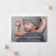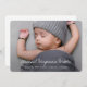Esta carta simples e encantadora de anúncio de nascimento de fotos apresenta um design contemporâneo que é facilmente personalizado com a foto do seu bebê, os detalhes e a sua mensagem.Escolhemos cantos arredondados como a configuração padrão de forma, mas você pode facilmente mudar o aspecto para cantos agudos, já que essa aparência também funciona maravilhosamente com este design. Experimente as duas formas no modo de edição e veja quais são as suas propriedades! Junto com o formato de foto do cheio, fizemos do nome do seu bebê o foco, apresentado em um roteiro moderno que é ao mesmo tempo arrumado e legível, mas também expressivo, quente e familiar. O script de nome e o outro texto na frente da placa são brancos nítidos. Você pode mudar a cor e a fonte deste ou de qualquer outro texto de acordo com o seu gosto, e nós convidamos você a brincar com esses elementos. Se preferir uma aparência mais minimalista, você pode excluir sem substituir qualquer um de nossos estados de amostra - talvez não queira incluir a hora do dia ou a duração, por exemplo. Nós definimos o fundo no verso como transparente, para deixar a cor do seu papel simplesmente servir como o tom base. Você pode mudar isso escolhendo uma cor em vez disso, seja ela azul ou rosa macio ou qualquer outra coisa. Na parte traseira, adicionamos um texto de espaço reservado para que você substitua por sua própria mensagem. Você pode alterar a fonte e/ou a cor do texto também. A cor de texto padrão no verso é um tom de cinza. Depois de excluir nosso texto de marcador de posição, você pode simplesmente deixar o vazio de trás completamente, para que possa adicionar uma mensagem manuscrita com suas assinaturas depois de receber seus cartões. Ou você pode digitar uma mensagem e depois assinar os cartões manualmente depois de recebê-los, em preferencialmente do que digitar seus nomes ao editar o outro texto. Em qualquer caso, lembre-se de remover todo o texto do marcador de posição no verso, incluindo os nomes de exemplo, assim como os detalhes de exemplo e a foto na frente! O tipo de papel padrão, matte, tem um calor suave e resiste a manobras, então é uma escolha excelente para escrevendo sua própria mensagem. Use as ferramentas intuitivas de design, sua foto favorita e sua inspiração para personalizar esta placa simples de anúncio de nascimento personalizada e torná-la exclusivamente sua!