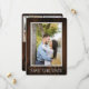 Anuncie a data do seu casamento para amigos e familiares com este Anúncio de Data de Casamento simples e elegante com foto. O design do anúncio apresenta um rico fundo de madeira e espaços para três fotos do casal feliz, completo com um design de texto moderno.
