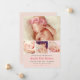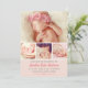 Compartilhe a chegada da sua bebê com este doce cartão de anúncio de nascimento com quatro fotos adornado com acentos de coração branco. "Anunciando a Chegada De" em letra cursiva rosa com o nome do bebê, detalhes do nascimento e uma mensagem de "Pais Orgulhosos" em um fundo rosa suave. O verso apresenta um padrão de coração rosa correspondente. Rosa, rosa claro e cinza carvão. Todo o texto é totalmente personalizável.
