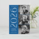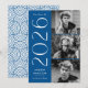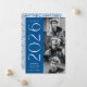Celebre a conquista do seu graduado com este moderno anúncio de formatura da turma de 2026, projetado com um estilo art déco limpo. A frente do anúncio apresenta três fotos do graduado dispostas verticalmente ao longo do lado direito, combinadas com “2026” exibido em letras art déco brancas e nítidas contra um fundo azul clássico. Personalize o anúncio com o nome do graduado e da escola para criar um souvenir significativo e elegante. A parte traseira do anúncio apresenta um padrão de redemoinho geométrico azul e branco coordenado, completando o design contemporâneo. Perfeito para formaturas do ensino médio e universitário, este anúncio de formatura com múltiplas fotos oferece uma maneira sofisticada de compartilhar o marco da turma de 2026.