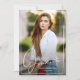 Este elegante anúncio de formatura apresenta duas fotos do seu graduado - uma na frente e uma no verso. A palavra Graduado em uma escrita moderna branca sobrepõe a parte inferior junto com o seu nome e ano de turma. Altere a redação no verso para um anúncio de formatura ou convite de festa de formatura. Você também pode alterar a cor no verso para combinar com a foto ou a cor da escola.