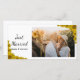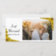 Customize the pretty Sunflower Edge Just Married Photo Card with your own personal wedding picture and names of the newlyweds. This elegant custom floral just married photocard features yellow sunflowers adorning the corners with a white background.