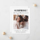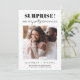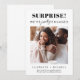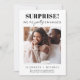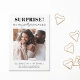 Anúncio de noivado engraçado com sua foto e "Surpresa! Finalmente estamos noivos" em uma mistura de tipografia moderna e minimalista e caligrafia. Personalize com seus primeiros nomes e uma mensagem personalizada de noivado ou anúncio de data de casamento.