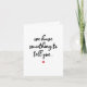 Anúncio simples de noivado cartão com o ditado "temos algo a dizer-lhe..." na parte da frente em uma fonte elegante negrito script e um coração de amor vermelho. Dentro está uma foto de você e seu parceiro, as palavras "SURPRESA, estamos nos casando", seus nomes, data e local do seu casamento futuro.