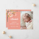Announce your new arrival with this elegant, sweet peach birth announcement photo card. The design features delicate watercolor blossoms and a clean, modern layout to showcase your favorite newborn portraits. This multi-photo template is the perfect way for parents to share their "little peach" with friends and family.