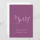 Peço desculpa por não convidar convidados que deviam ir ao seu casamento e levá-los para o seu evento de casamento. Parte do coração tipográfico correspondente no conjunto de casamentos roxo e branco. Ideal para usar como cartão de casamento para informar aos seus convidados sobre mudanças de casamento que a pandemia ou outras mudanças o forçaram a reduzir seus números de convidados e, portanto, estão mudando os convidados para assistir remotamente seu evento ao vivo. A redação pode ser alterada para atender às suas necessidades e aos seus detalhes de streaming. Outras opções de cor estão disponíveis. Design original de Sarah Trett para www.mylittleedenweddings.com no Zazzle.
