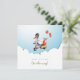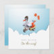 Um cartão de anúncio de gravidez engraçado, fofo e único que é totalmente editável e desenhado à mão em lápis colorido. Sexo neutro, ele apresenta uma cegonha cavalgando um patinete através das nuvens, em cor laranja e amarela.