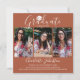 Este elegante cartão de anúncio de graduação em chic pode ser personalizado em letras brancas em um fundo de terracota com suas 4 fotos de formando especial. Projetado por Thisnotme©