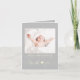 A simple and sweet gender neutral birth announcement and thank you card with modern pastel yellow typography against a soft grey background. The front features your newborn's photo, full name, arrival date and birth stats, and "thank you" written in a trendy pastel yellow script with a heart joining the two words. On the inside of the card, on the right you have room for a handwritten personal note and on the left side you can add an additional photo, a thank you message, and parent and sibling names under a coordinating cute pastel yellow arrow with a heart in the middle.