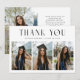 Modern and whimsical graduation announcement photo card featuring 3 photos on the front and 1 on the back. The text at the top says "THANK YOU." Add the graduate's name, information, and message to personalize this card.