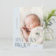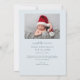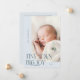 Cartão de nascimento elegante e moderno, tema do Natal, com um texto tipográfico que diz "pequenos dedos grandes alegria". Este é um cartão de anúncio de nascimento para as férias! Adicione suas fotos, estatísticas de natalidade e uma mensagem! O fundo é azul ardente.