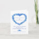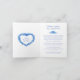 Anúncio de transmissão de vídeo de casamento cartão não me esqueças azul e branco dobrado. Este cartão simples, mas elegante, faz parte do conjunto de casamento de arte de tinta e aquarela com flores não me esqueças e coroa de coração. Ideal para usar como cartão de informações de casamento para informar os convidados de um evento de transmissão de casamento devido a circunstâncias imprevistas. Arte e design originais de Sarah Trett para www.mylittleedenweddings.com