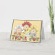 Três bebês simpáticos da arte popular com touca e ramos de flores, e a arte da palavra "Tripla Alegria" em letras de retalhos. Um cartão maravilhoso para anunciar o nascimento de trigêmeos, ou para parabenizar um casal pelos seus três novos bebês! Há também selos postais correspondentes.