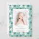 Cartão modelo de nascimento de bebê, branco e simples, cor-de-água floral, cor-de-turquesa, com flores florais verdes, azuis e brancas de cor-de-rosa pastel, sobre fundo marinho, na frente. 1 imagem do seu recém-nascido que pode ser adicionada a esta placa (frontal). O papel tem belas bordas redondas. Cartão perfeito para anunciar a chegada do seu novo bebê com as estatísticas de nascimento. Excelente para o bebê e para a menina. Perfeito para todas as estações!