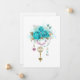 Antique gold key with trendy turquoise roses decorated with leaves of white gold and pink and blue beads. Fashionable color. Turquoise roses. White gold. Blue tiffany.