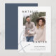 Compartilhe a notícia do seu compromisso com esses elegantes cartões de anúncio modernos que apresentam uma foto vertical ou orientada para retrato com seus nomes sobrepostos em cada canto, e um e comercial desenhado à mão superdimensionado. Personalize com três linhas de texto personalizado ao longo da parte inferior para detalhes adicionais ou o site do seu casamento.