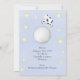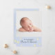 Anúncio de nascimento de bebê com fundo azul pervinca e estrelas cintilantes, Com uma rima infantil favorita "A vaca pulou sobre a lua" Este modelo de dupla face é ótimo para anúncios de menino e menina, e apresenta um espaço para foto na frente, e uma vaca caprichosa com data e estatísticas no verso.