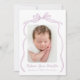 Celebre a chegada do seu pequeno com o nosso elegante anúncio de nascimento do Arco Roxo Vintage. Mostre a foto do seu recém-nascido moldada por um encantador arco roxo, com o nome do seu bebê em um lindo roteiro roxo manuscrito. Abaixo, você pode adicionar detalhes de nascimento como peso, comprimento e data. O verso oferece espaço para uma foto extra e uma mensagem personalizada para os entes queridos. Essa manutenção personalizável é a maneira perfeita de anunciar seu novo membro da família com estilo e graça!