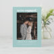 This engagement announcement features a clean soft aqua blue frame with bold typography and space for a favorite couple photo. A modern way to share the exciting news with friends and family while keeping the focus on the photo and names. The simple layout works beautifully for couples who love timeless design with a fresh feel. Personalize the names and wording to match your engagement story.