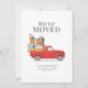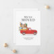 Anuncie sua última jogada de estilo com este clássico cartão de anúncio em movimento de caminhão vermelho que seus amigos e familiares adorariam receber. Substitua facilmente os detalhes da placa pelo seu novo endereço clicando no botão "Personalizar" acima.