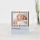 "Winter Stripes" blue/brown photo birth announcement. Personalize this modern and stylish photo card template with your baby boy's photo and details for a one-of-a-kind birth announcement.