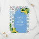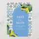 Imaginem o romance da Itália capturado nos nossos belos anúncios de casamento de destino, adornada com uma charmosa fronteira de limões de aquarelas e o padrão de azulejo inspirado pelo Amalfi. O fascínio da Itália é repetido no sentido inverso, onde se desenrola um padrão de azulejo mesmerizador em tons de azul e ferrugem. Personalize essas belas cartas com facilidade, usando nosso modelo amigável para adicionar seus detalhes especiais. Escolha entre a conveniência das placas impressas ou a flexibilidade de uma impressão para salvar a data. Descubra um mundo de cartões salve a data encantadores e ideias inspiradoras em www.zazzle.com/dotellabelle. Cada design mostra a única arte aquática e design de Victoria Grigaliunas, fazer seu anúncio como uma verdadeira peça de arte.