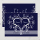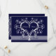 Anúncios de Casamento de Data de Salvamento do Meu Coração. Causar uma impressão duradoura com este elegante Anúncio de Casamento de Data de Salvamento do Meu Coração com um coração de redemoinhos brancos e flores em fundo azul escuro, projetado por Olympia. Clássico e sofisticado, mas contemporâneo ao mesmo tempo. Design disponível em várias cores. Personalize-o com seu texto. Você pode alterar o texto e usá-lo como achar melhor.