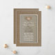 Esses anúncios elopementes apresentam um design de aparência de burlap que apresenta um coração com seu monograma em burlap tan como ponto focal. Em volta da burpeta bronzeada está uma estrutura branca que é moldada por uma burpata mais escura que o bronzeado. Este anúncio de elopemento é uma forma excelente de anunciar sua adesão à família e aos amigos. Direitos autorais