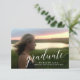 Este Simples Formandos de Fotos é a maneira perfeita de anunciar seus formandos em um grande dia. Vamos comemora sua realização espalhando as boas notícias! Meus Anúncios Simples de Formandos Fotográfico capturarão seu momento especial. Envie para amigos e família para que eles possam compartilhar seu entusiasmo. Você pode personalizar o nome e as informações da escola na frente do cartão. Toda a cópia de retorno pode ser personalizada para que você possa adicionar sua própria mensagem e informações na parte traseira do cartão. Carregue suas próprias fotos na parte de trás e na frente do cartão para um anúncio perfeito.