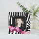 Convite de formatura com foto de meninas com laço e fita rosa e zebra rosa elegante. Este belo modelo de convite de formatura e festa de aniversário com zebra rosa é facilmente personalizado para o seu evento, adicionando sua foto, detalhes do evento, estilo de fonte, tamanho e cor da fonte e texto. Por favor, note que todos os adesivos, cartões e desenhos de convite que você encontrará na Zazzle são gráficos impressos sem joias, laços, partes ou peças elevadas, em relevo ou adicionadas.