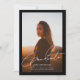 Apresentando nosso legante cartão de anúncio de formando de script, uma mistura encantadora de uma letra de escrita clássica e estética contemporânea. Este design único encapsula a essência de sua jornada, convidando os entes queridos a marcar seus calendários para seu dia especial.