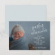 Uma simples camada de tipografia branca do nome do bebê e estatísticas de natalidade e a fotografia do seu bebê são apresentadas neste pequeno e simples anúncio de 3,5" x 5". *Use uma foto horizontal ou recorte sua foto com o bebê na metade esquerda do anúncio antes de carregá-la. **O Serviço de Design ao Vivo pode ajudá-lo com seu layout de design, se necessário.
