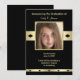 Este anúncio de graduação da faculdade ou universidade de fotografia é preto clássico com sotaques dourados. Um anúncio formandos impressionante. Direitos autorais